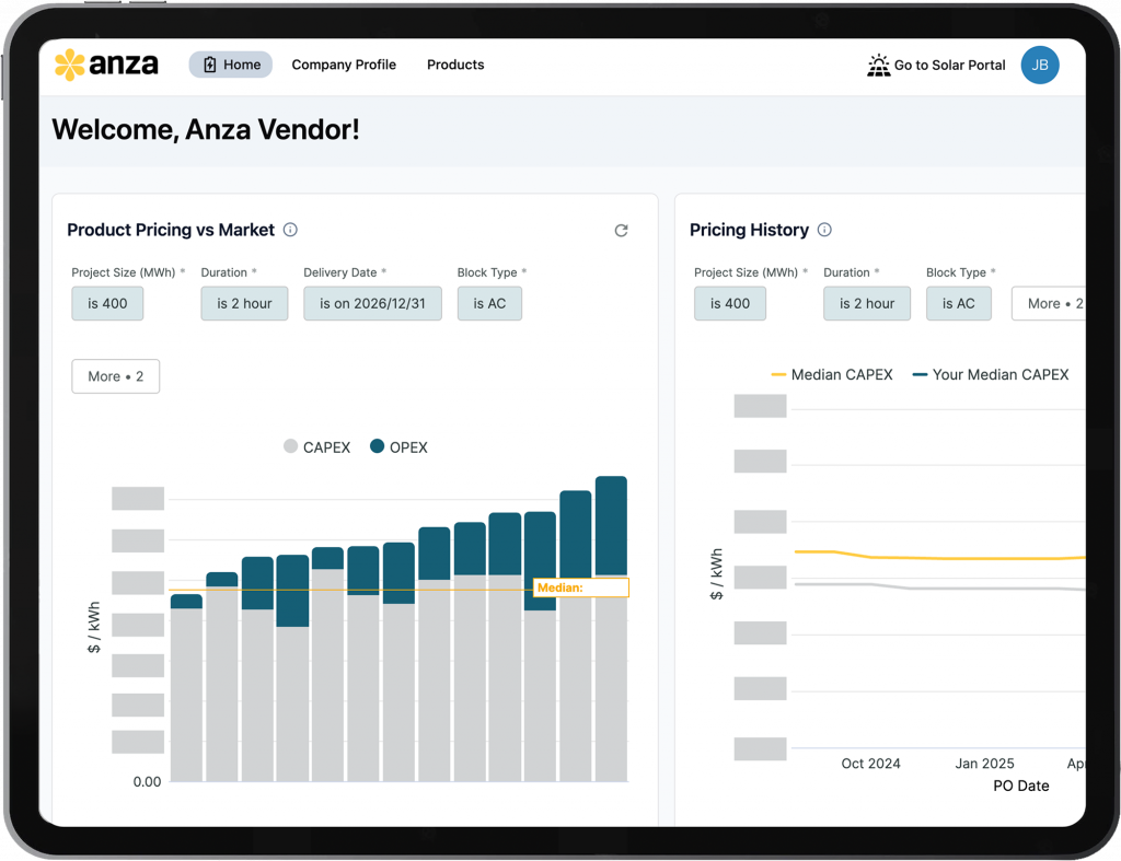At Anza, we value our relationships with our solar module, BESS, and transformer manufacturer partners, and we honor our commitment to building long-term relationships based on trust and transparency. The Anza platform is built to safeguard your company name, product name, and pricing information. You can only see your own proprietary information; no other company can see yours.